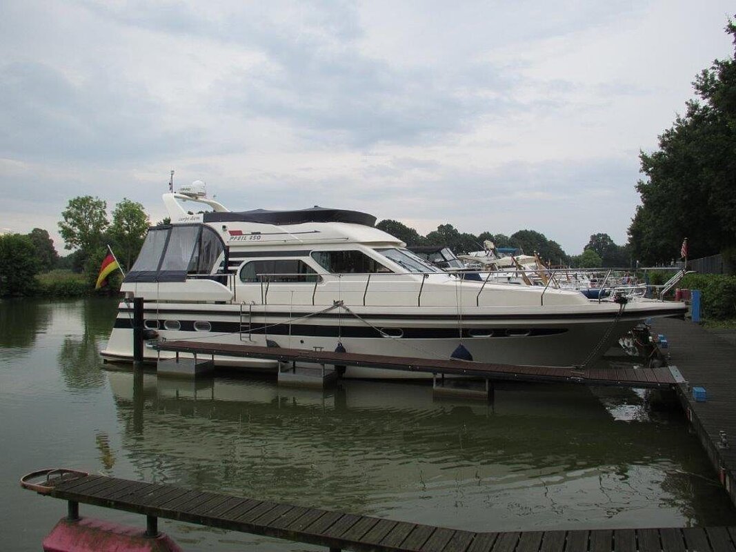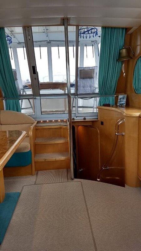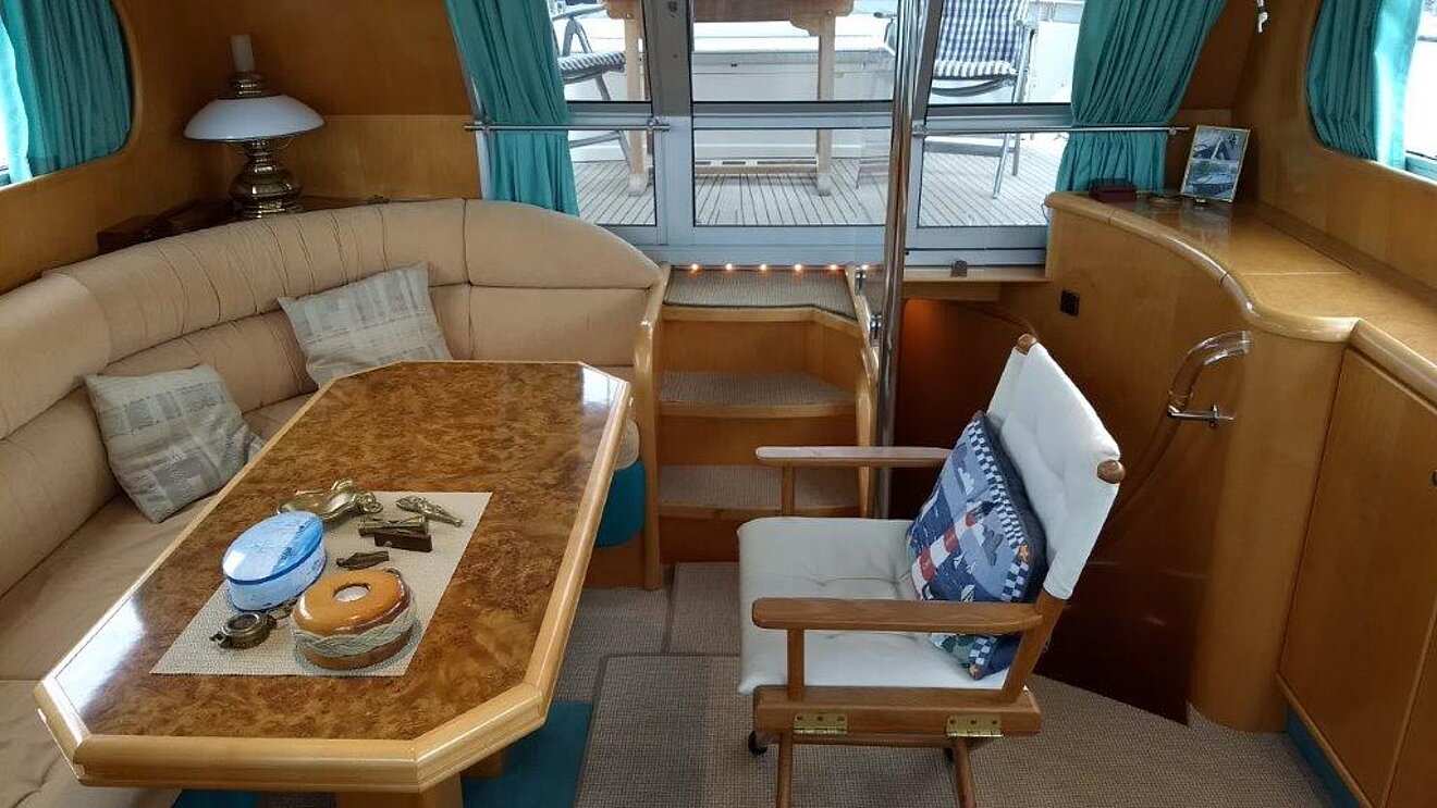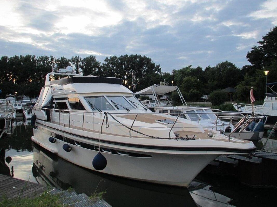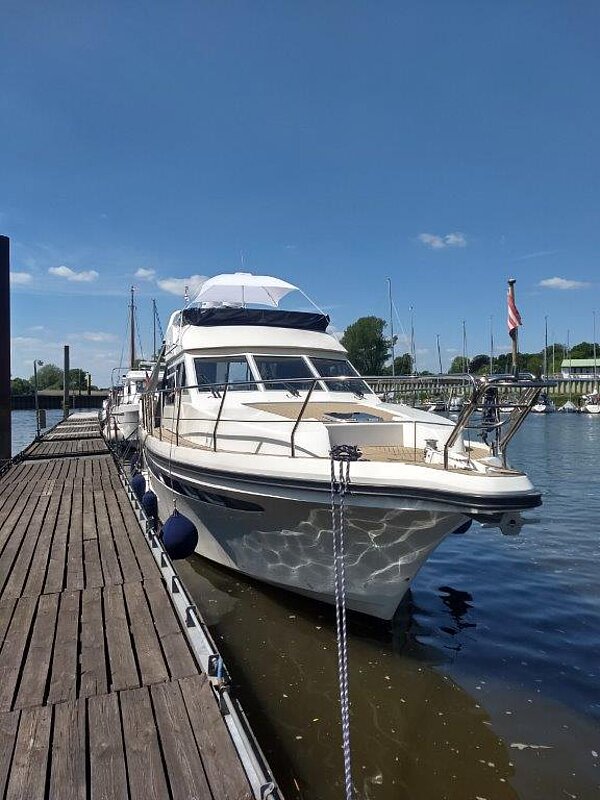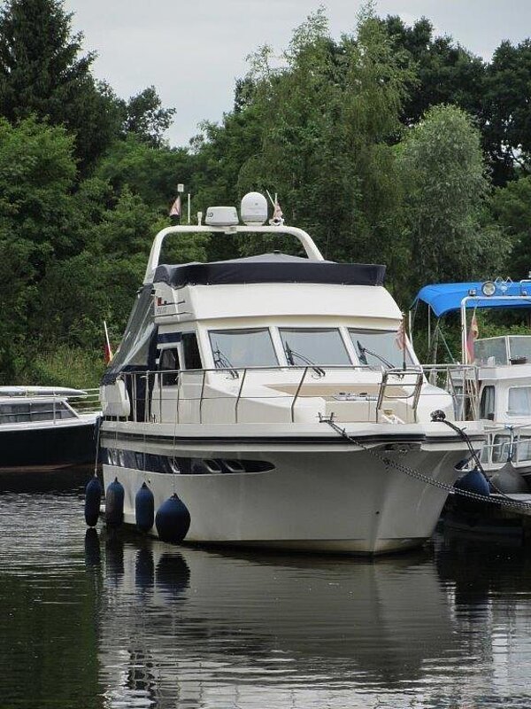 Wir bieten in Vermittlung diese 1a gepflegte Motoryacht an. Eigneryacht, perfektes Langstrecken- und ideales Familienschiff, leicht zu bedienen, auch von einer Person, da Funkfernsteuerung für Maschinen, Bug- und Heckstrahlruder (Yachtcontroller), geräumiges Achterdeck, große Flybridge mit Steuerstand, großer Salon mit Steuerstand.
