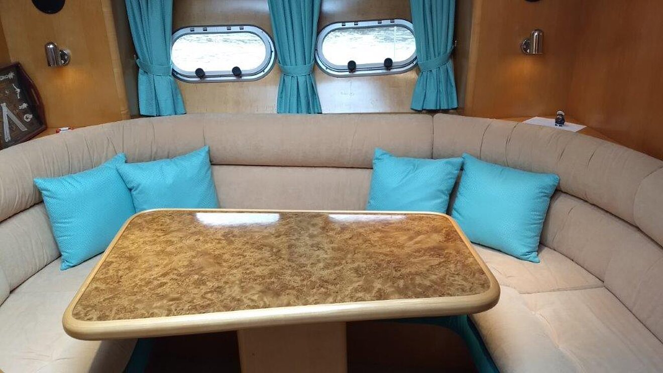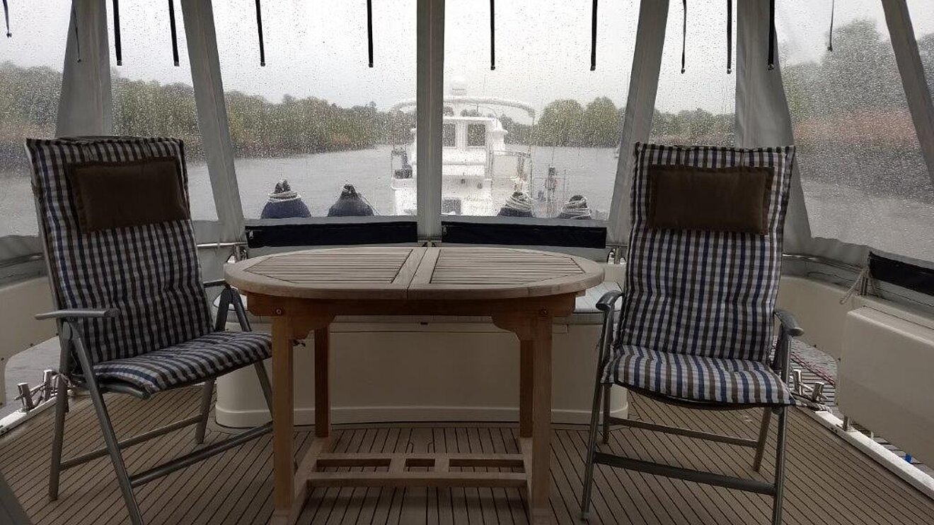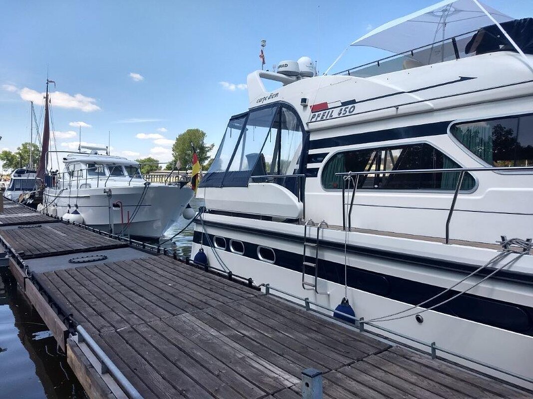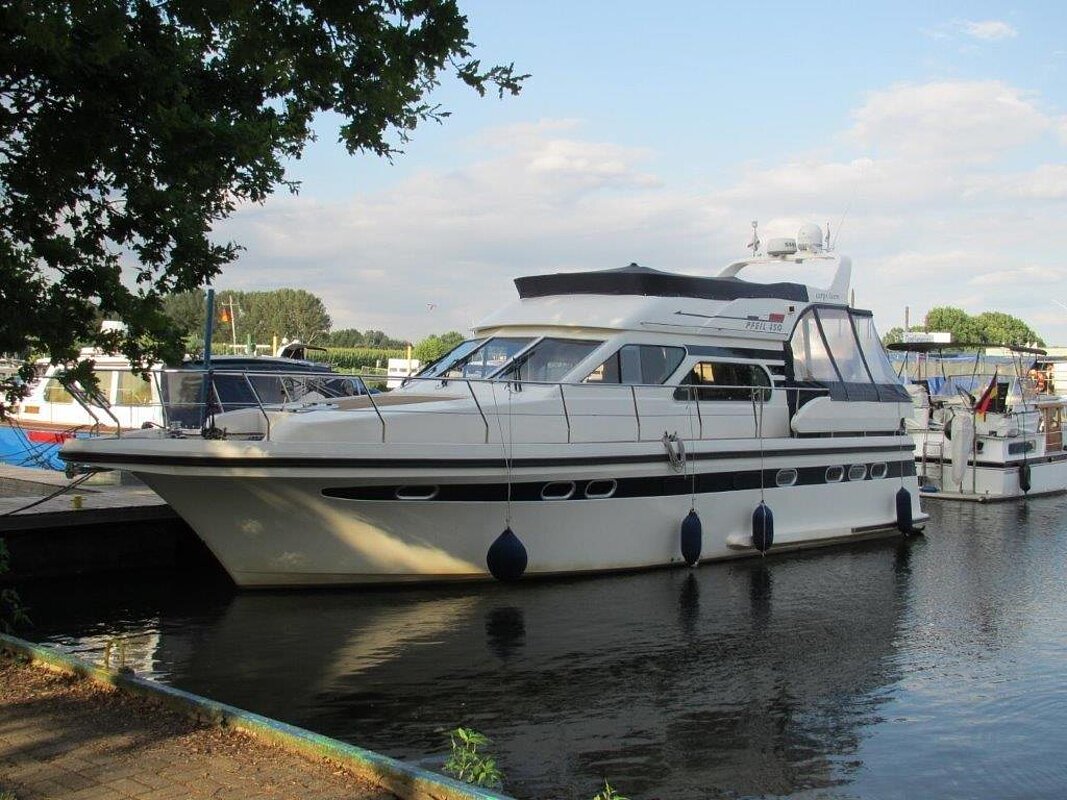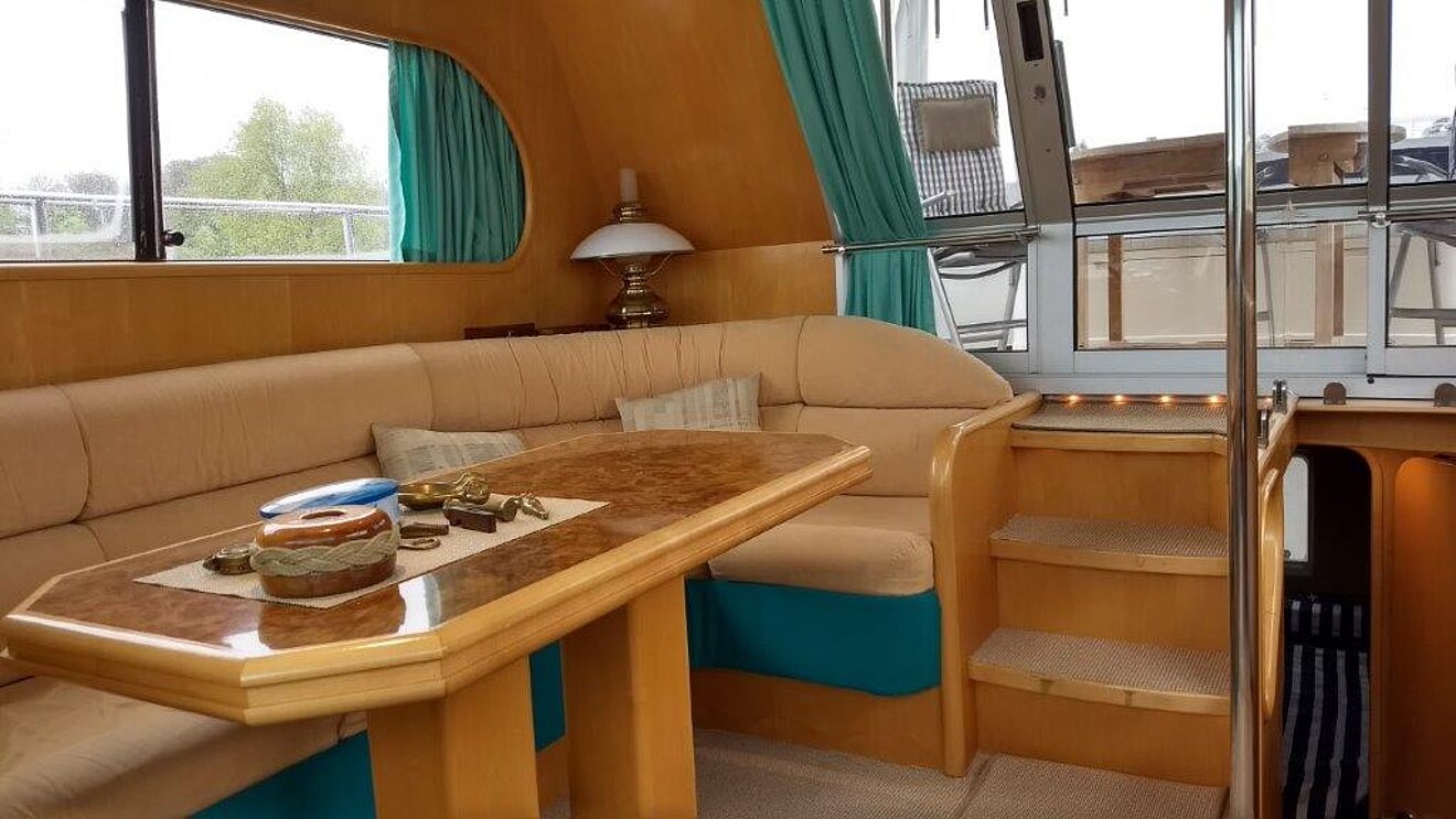 Wir bieten in Vermittlung diese 1a gepflegte Motoryacht an. Eigneryacht, perfektes Langstrecken- und ideales Familienschiff, leicht zu bedienen, auch von einer Person, da Funkfernsteuerung für Maschinen, Bug- und Heckstrahlruder (Yachtcontroller), geräumiges Achterdeck, große Flybridge mit Steuerstand, großer Salon mit Steuerstand.